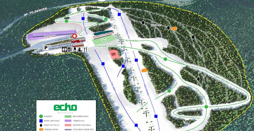 Echo Mountain Ski Resort is a small ski area located in Idaho Springs, Colorado. It is known for its night skiing, friendly atmosphere, and close proximity to Denver with just under an hour's drive.